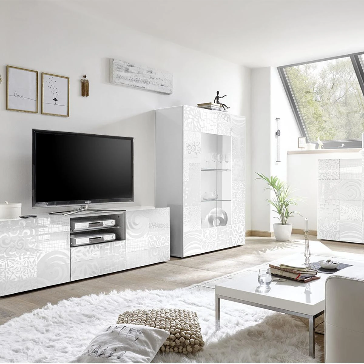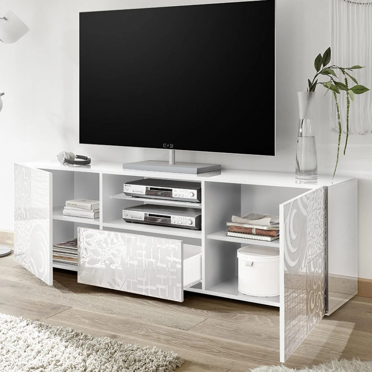 Points forts Nouvomeuble Grand meuble TV blanc laqué design ELMA