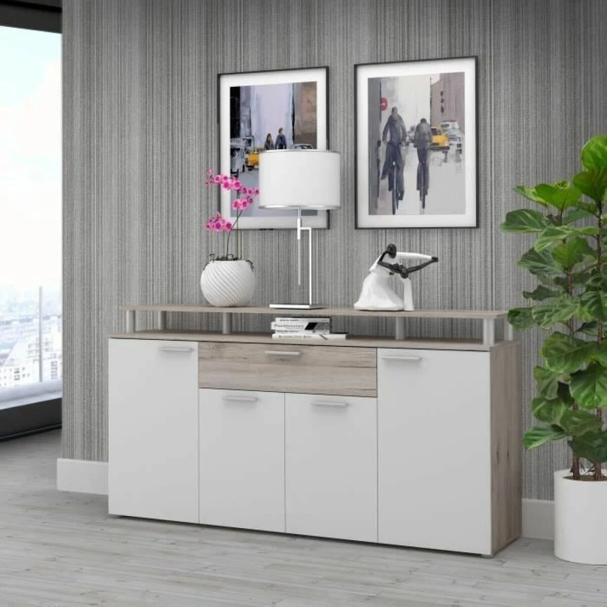 Points forts Cstore GULADA Ensemble meuble télé – buffet – table a manger – Contemporain – Blanc et décor chene