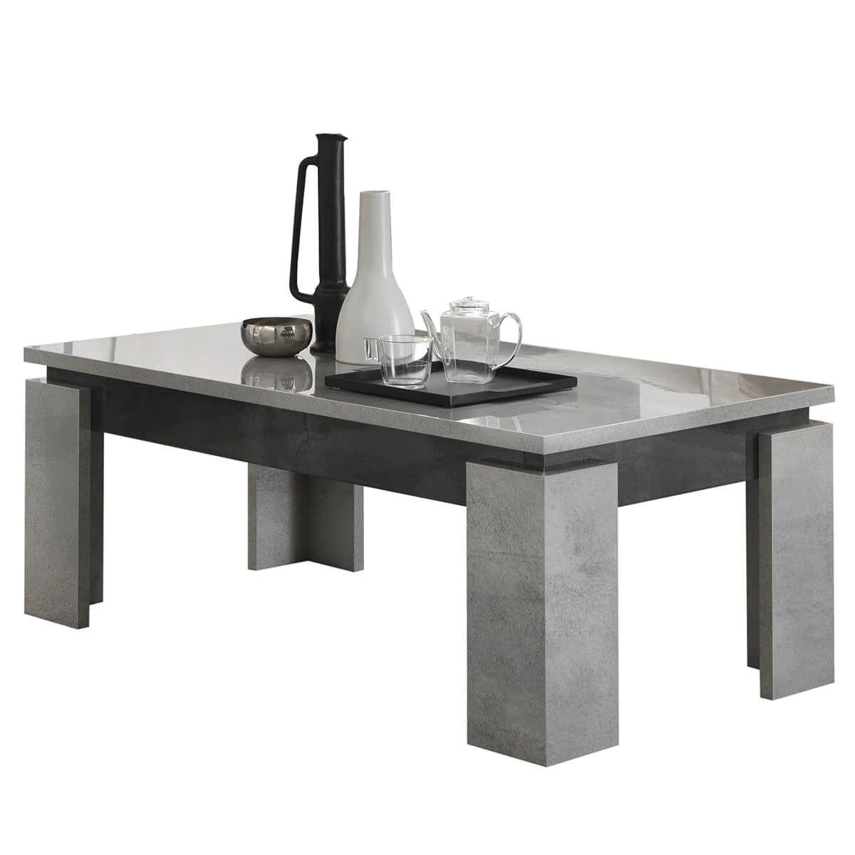 Table Basse : Structure et plateau en panneaux de particules finition mélaminée. Décor effet marbré coloris gris anthracite / gris clair et vernis polyester finition brillante.