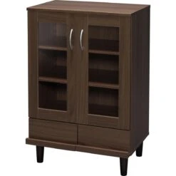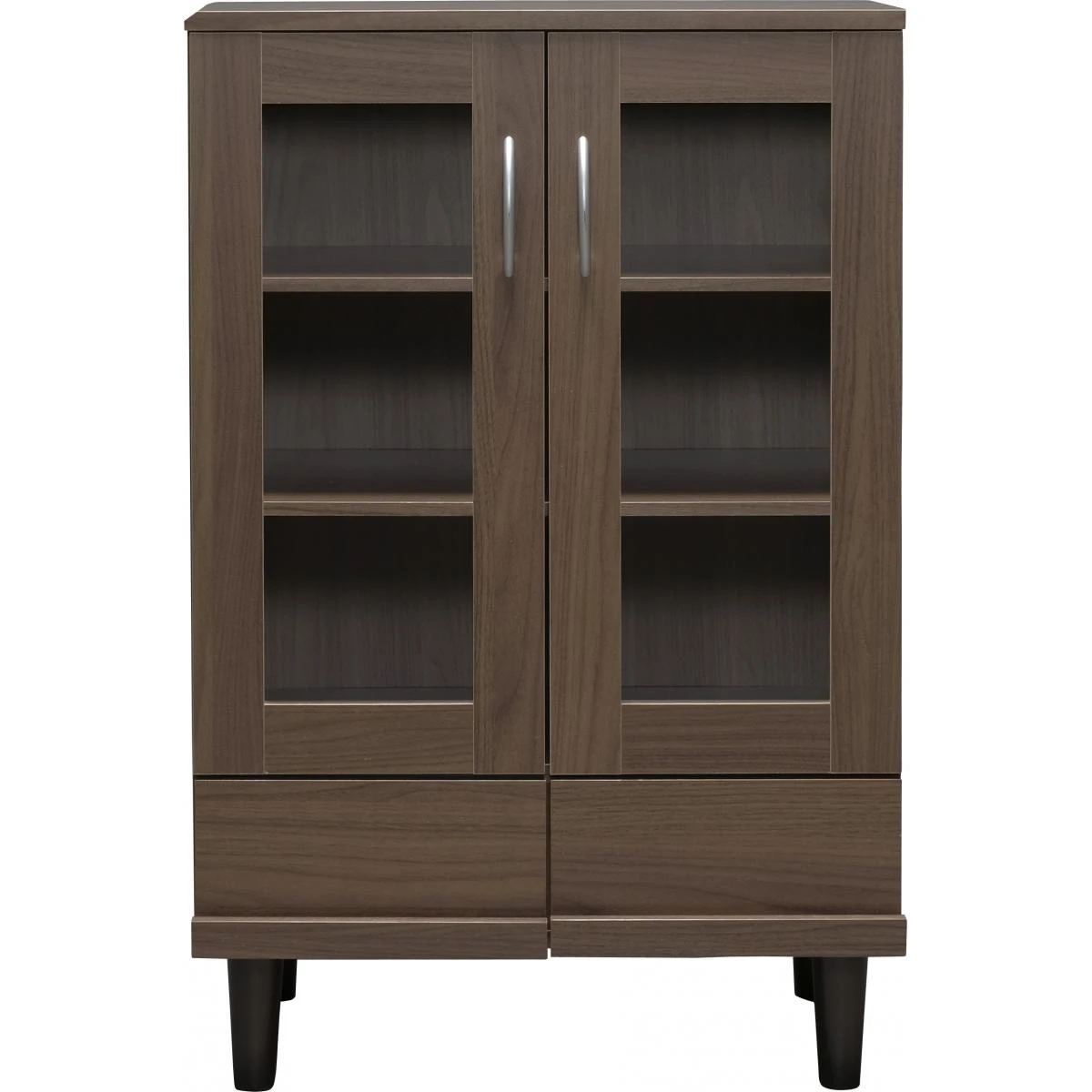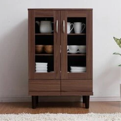 Points forts Iris Ohyama Iris Ohyama, Kitchen Cabinet KPB-9360 Vaisselier/Buffet 2 tiroirs et 3 étagères avec portes vitrées en bois MDF, Engineered Wood, Chêne Brun