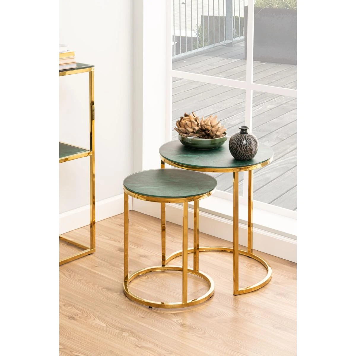 Points forts Toilinux Lot de 2 Tables d’appoint ronde en Marbre et MĂ©tal – Diam.45cm + Diam.35cm – DorĂ© et Vert