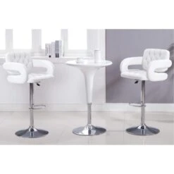 Points forts Vente-Unique Lot de 2 tabourets de bar CONAN – Simili – Hauteur Ajustable – Blanc