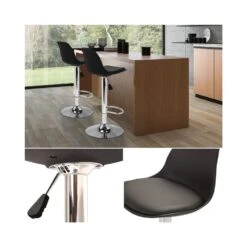 Le design nordique s’invite chez vous !Avec leur design scandinave, ces 2 chaises hautes de bar ultra-tendances apporteront une ambiance Ă la fois contemporaine et chaleureuse Ă votre intĂ©rieur !IdĂ©ales dans une salle Ă manger ou une cuisine, ces chaises hautes confortables apporteront une touche dĂ©co très chic. Elles sont rĂ©glables en hauteur grâce Ă leur vĂ©rin Ă gaz afin de s’adapter Ă tous les plans de travail, bars et tables hautes. Très stable avec son socle rond de 38,5 cm, chaque tabouret possède un repose-pied en mĂ©tal large pour garantir un maximum de confort. Pratiques, Ils pivotent Ă 360 degrĂ©s. Ces 2 tabourets design offrent une assise confortable avec leur haut dossier courbĂ© en polypropylène et leur assise rembourrĂ©e en mousse.Longueur assise : 38.5 cmProfondeur assise : 33 cmHauteur du dossier : 24 cmHauteur Mini : 83 cm / Hauteur Maxi : 104 cmVendu en lot de 2 tabourets coloris noir.Coloris disponibles sur notre boutique en ligne :Tabouret de bar NoirTabouret de bar BlancTabouret de bar Gris