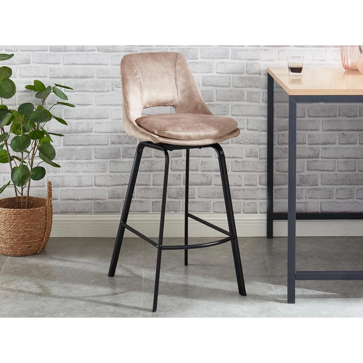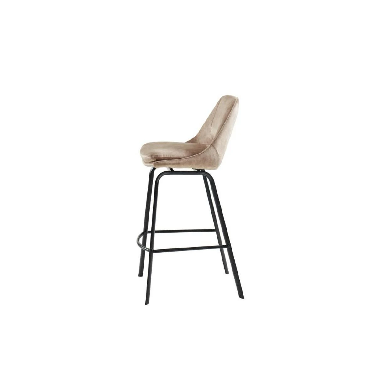 Le tabouret de bar KELINE est composé d’une assise en velours très doux et de 4 pieds robustes en métal noir mat.