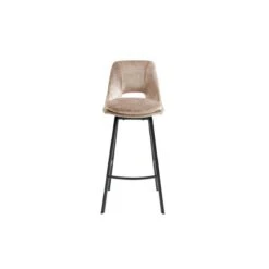 Points forts Vente-Unique Lot de 2 tabourets de bar – Velours et MĂ©tal – Beige – KELINE