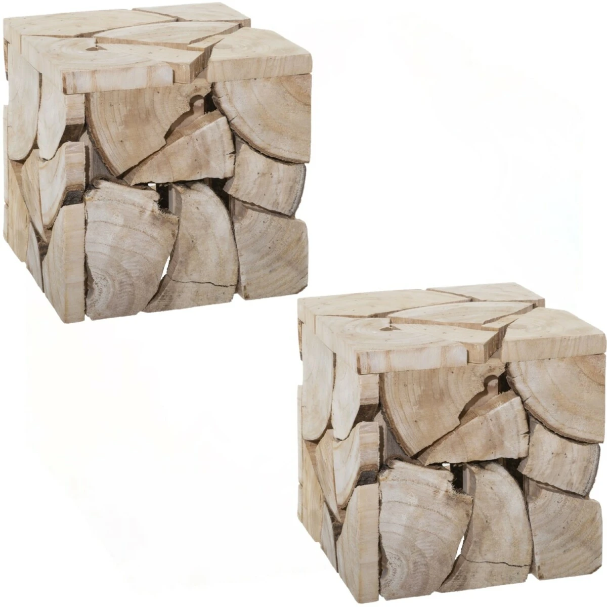Points forts Toilinux Lot de 2 Tabourets poufs carrĂ©s en MDF effet rondins de bois – Hauteur 30 cm – Marron