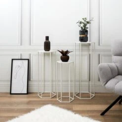 Points forts Paris Prix Lot de 3 Sellettes Gigognes Métal 90cm Blanc