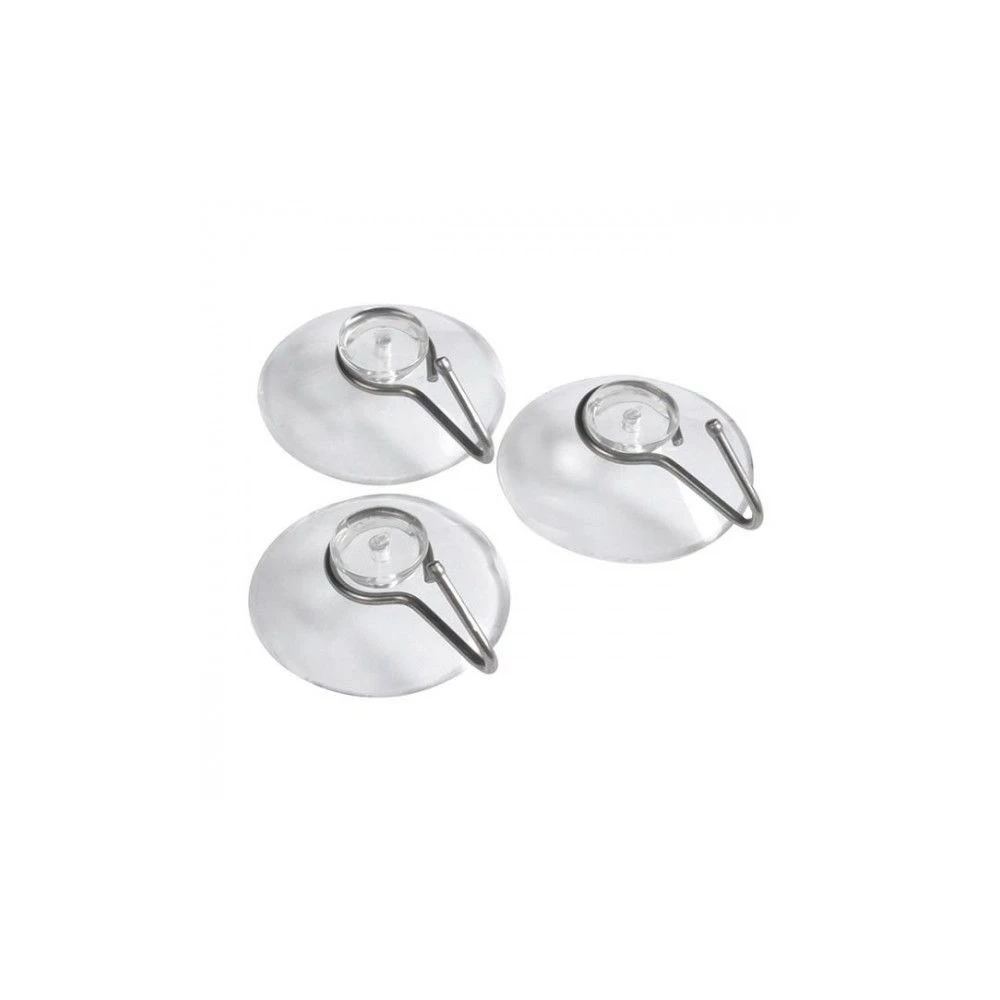 Lot de 3 crochets adhésifs, Crochet en inox, Ventouse ronde transparente, Diamètre : 5 cm