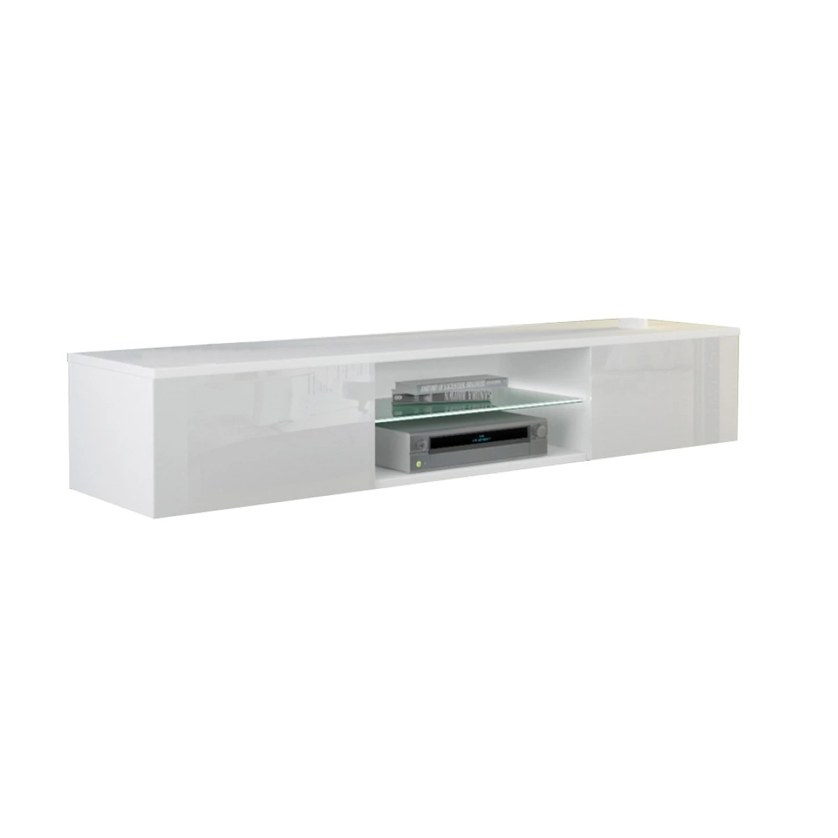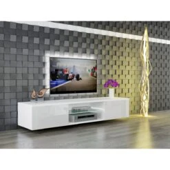 Points forts Dusine Meuble LED suspendu ou posé TV Giorgio Blanc mat et Blanc Laqué 160 cm