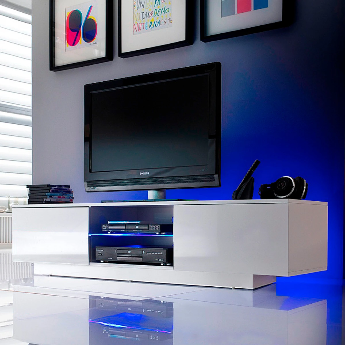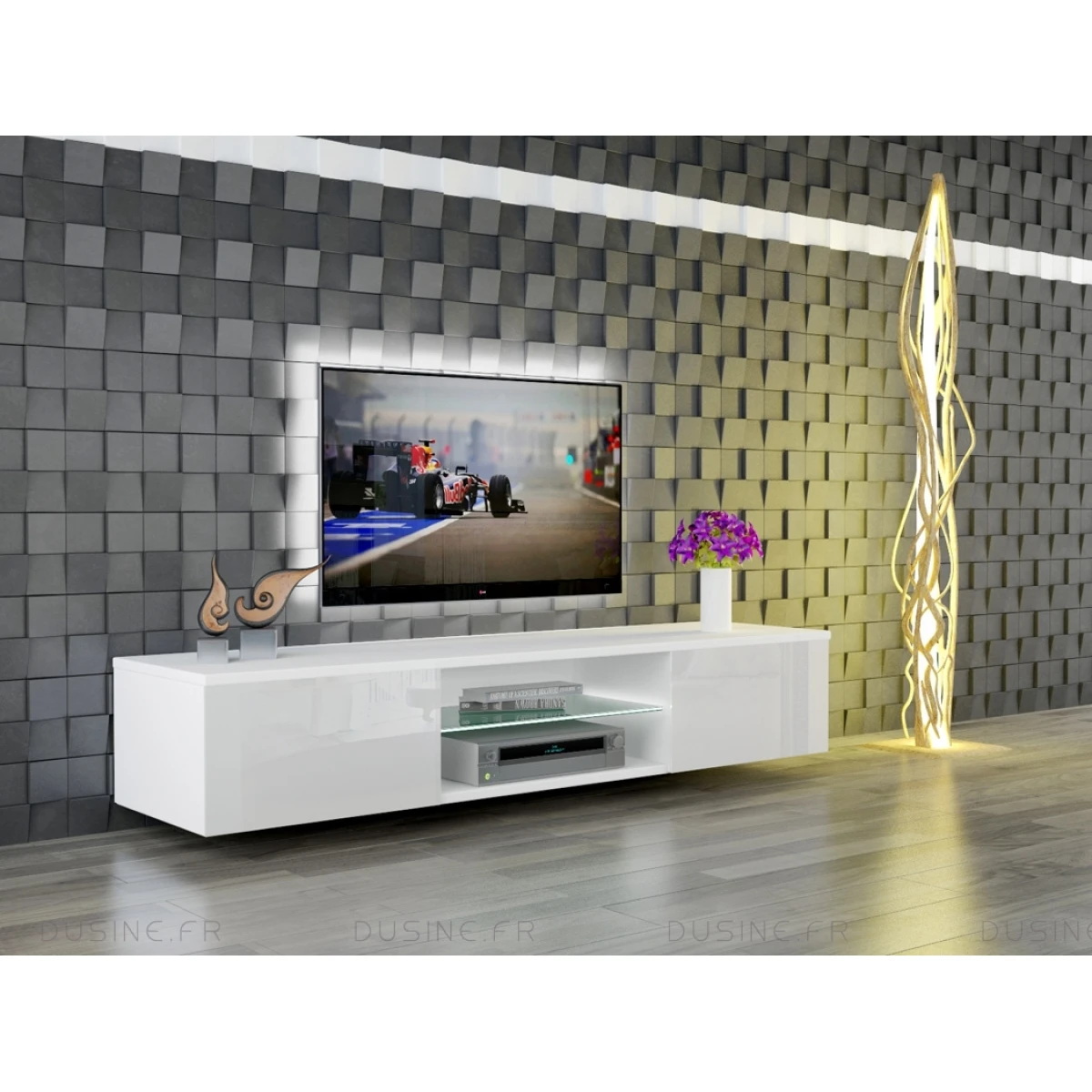 Meuble TV Giorgio suspendu ou à poser au sol – avec ses lumières LED RGB USB