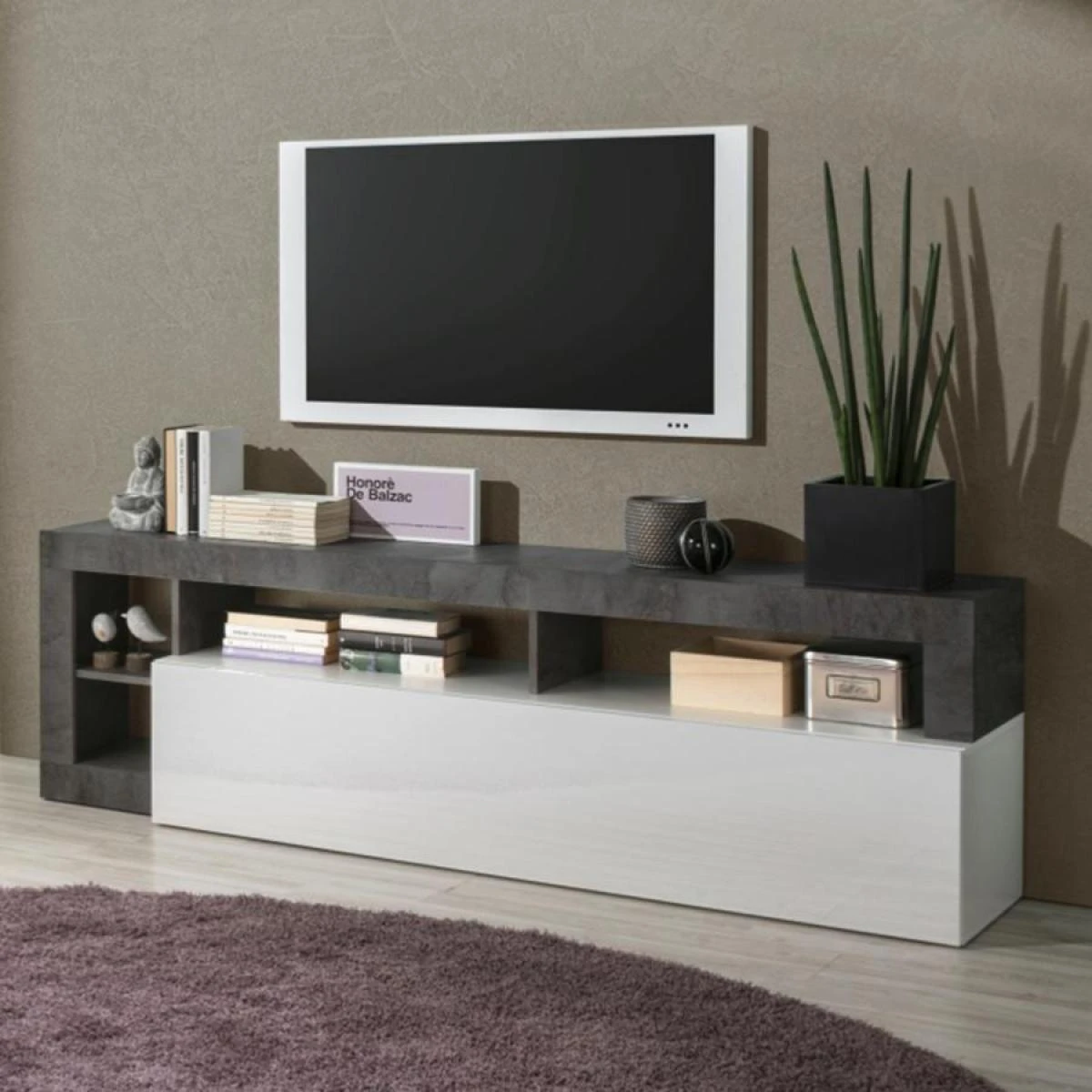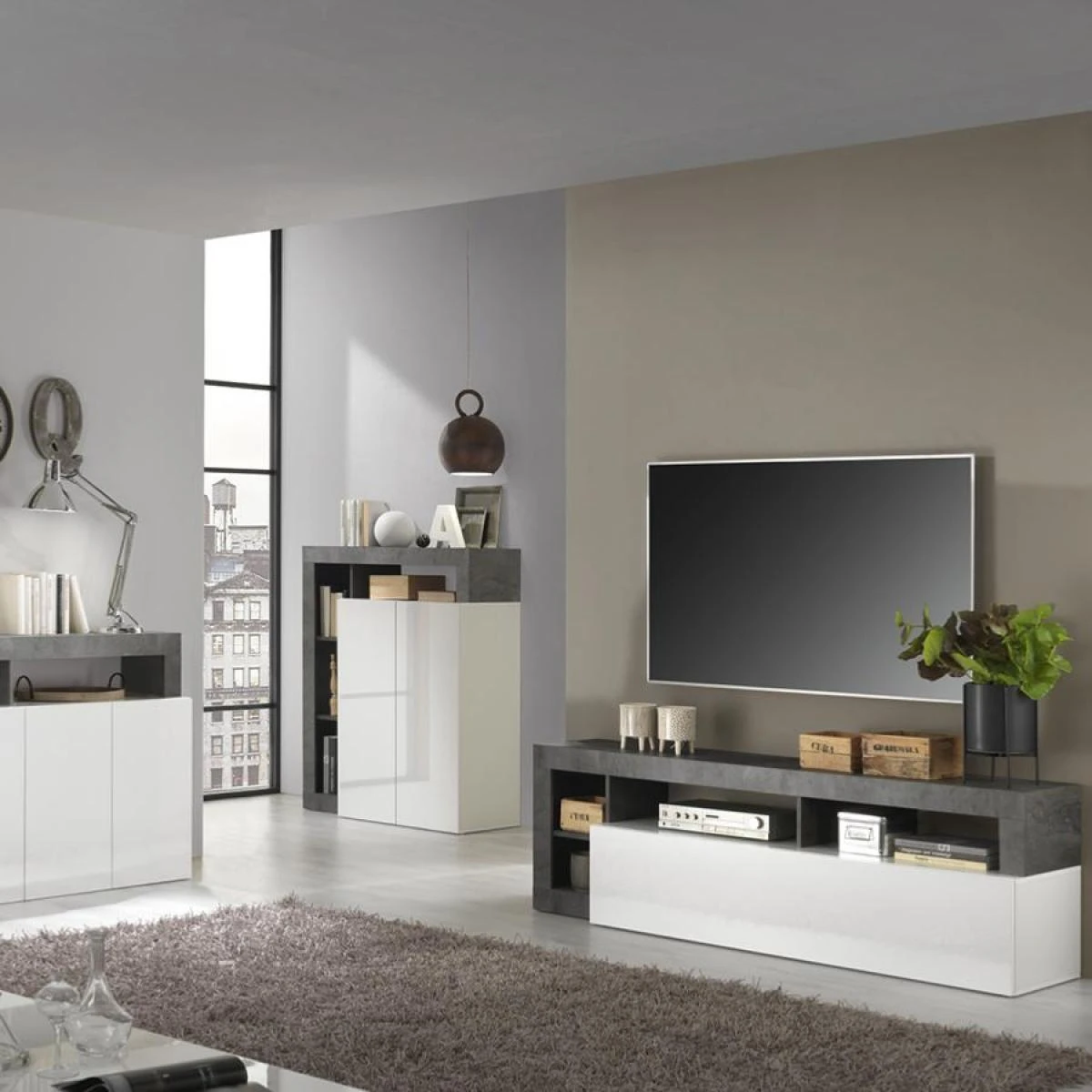 Points forts Nouvomeuble Meuble TV 180 cm moderne blanc et gris oxyde AMBRE