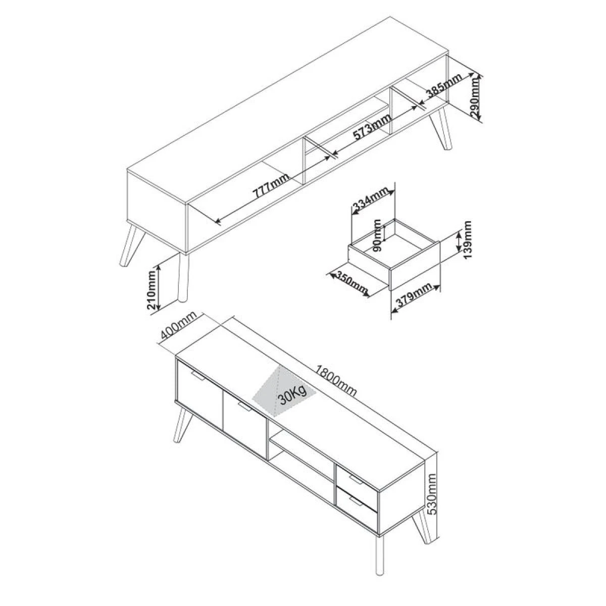 Niche :2 niches – largeur 57,3 cm laquĂ©es vert kaki, finition mate. . Pieds :En pin massif, hauteur de 21cm. . Portes :2 portes – en panneaux de particules, laquĂ©es vert kaki, finition mate. . Teinte :vert grisĂ© . Tiroirs :2 tiroirs – en panneaux de particules, laquĂ©s vert kaki finition mate. . Finition :Mate. . Garantie :2 ans. . PoignĂ©es :MĂ©talliques vert kaki. . Structure :En panneaux de particules. . Charge maxi TV :30kg. . A monter soi-mĂŞmeOui . Dimensions en cm : L.180 x H.53 x l.40 cm . Dispo pcs dĂ©tachĂ©es donnĂ©e fournisseur :NC .