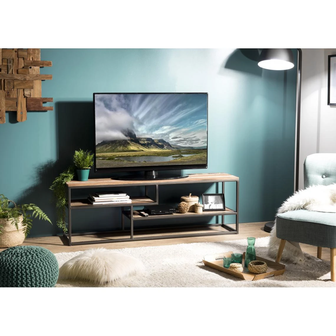 Points forts MACABANE Meuble TV 3 niveaux bois de Teck recyclé et métal – SIANA