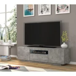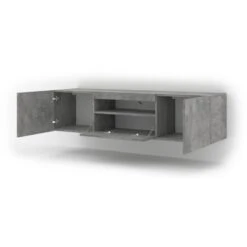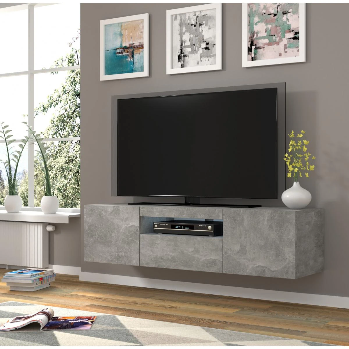Points forts Bim Furniture Meuble TV bas universel AURA 150 cm à suspendre ou à poser Béton sans LED