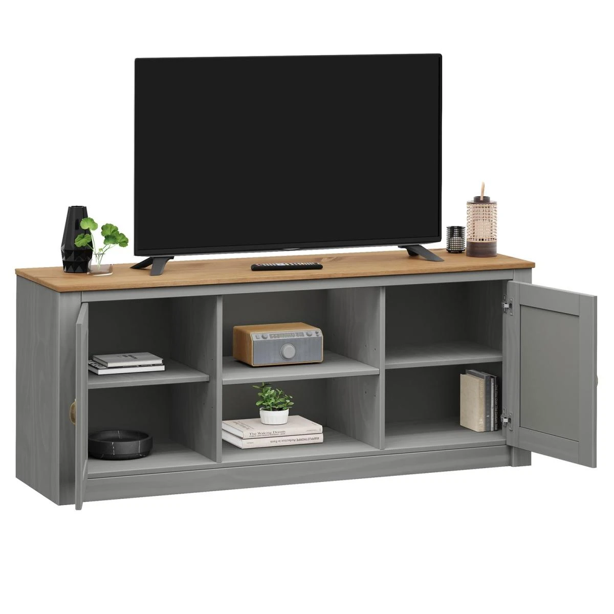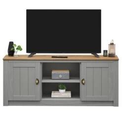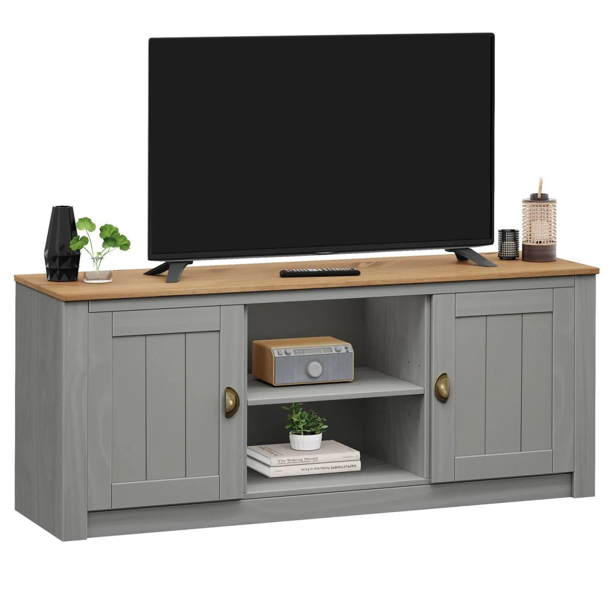 Points forts Idimex Meuble TV BOLTON 2 portes et 2 niches, en pin massif lasuré gris et brun