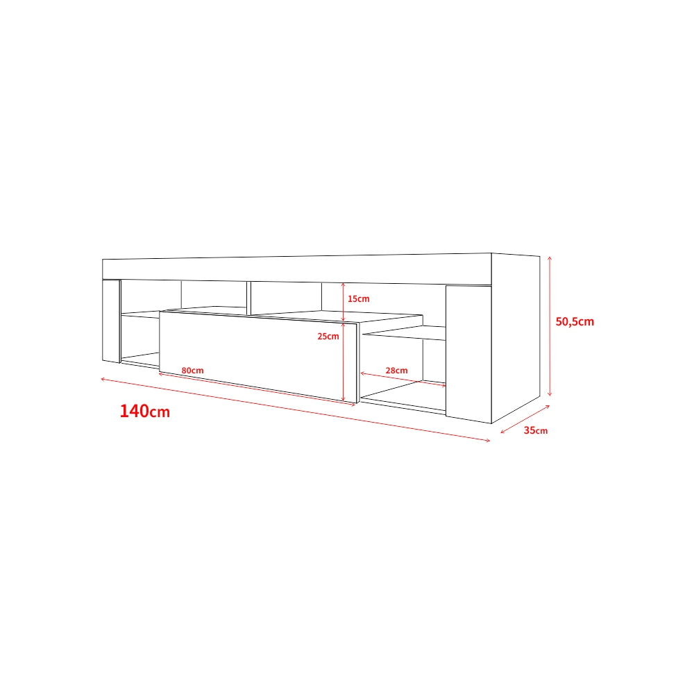 Voici meuble TV Hugo : la solution idĂ©ale pour votre intĂ©rieur ! Grâce Ă Â deux niches ouvertes, vous ordonnerez et bien exposerez votre Ă©quipement multimĂ©dia. DĂ©sormais, tout sera toujours Ă portĂ©e de la main. De plus, le meuble TV Hugo est Ă©quipĂ© d’un compartiment fermé pour que la poussière ne s’accumule pas sur vos accessoires tĂ©lĂ©. L’éclairage LED ajoutera un look moderne Ă votre salon et mettra en valeur vos dĂ©cos.Â