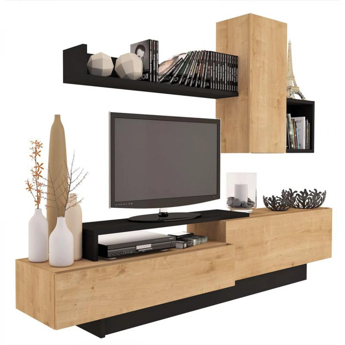 Le design sÂinvite chez vous avec le mur TV KASTLE. Il dispose de 2 abattants, 1 porte, 2 niches et 1 Ă©tagĂšre. Existe en 2 coloris : blanc/bĂ©ton et noir/chĂȘne.