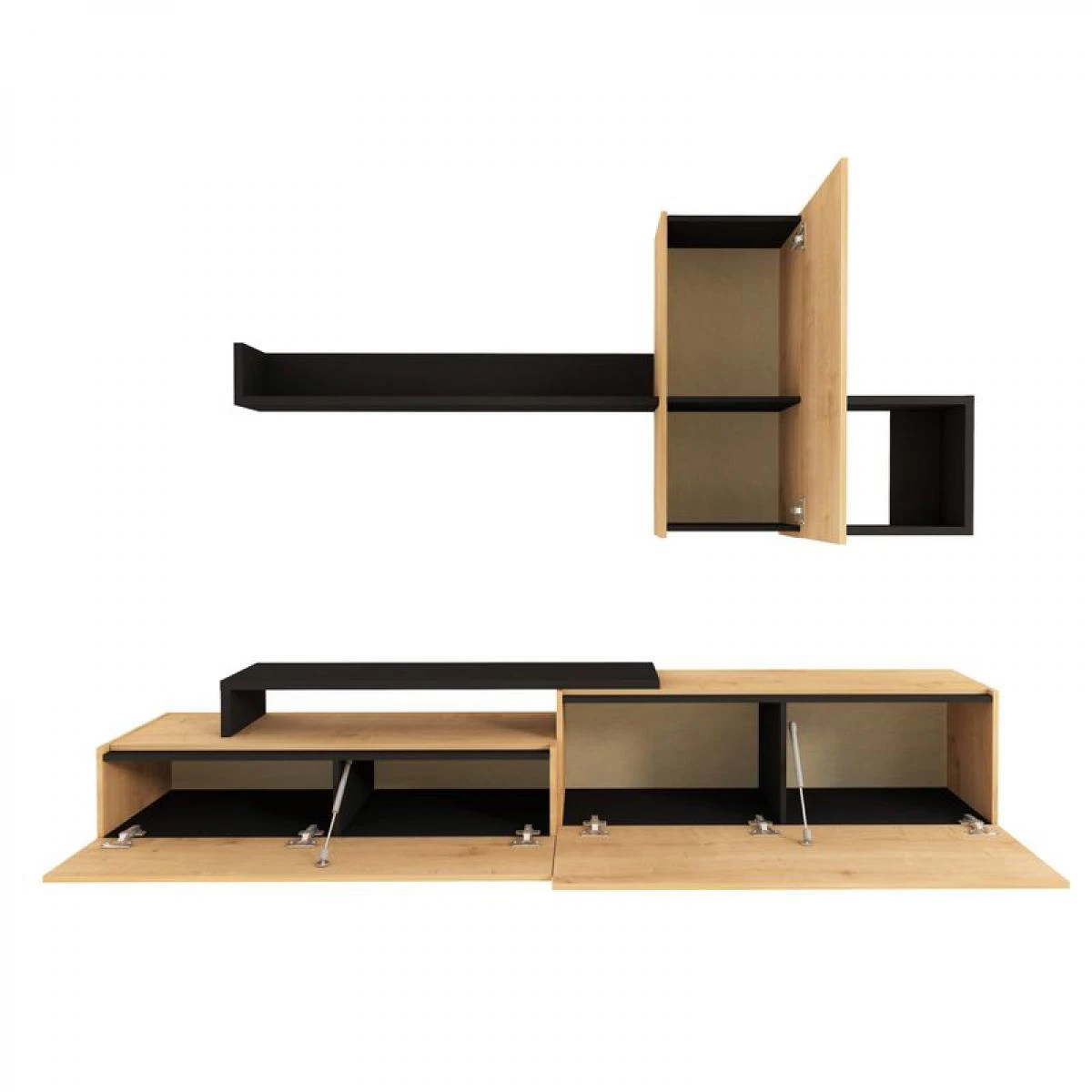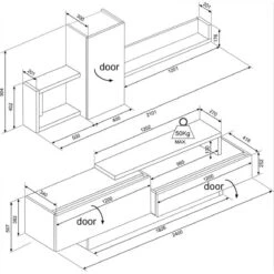 Niche :2 niches . Porte :1 porte battante . Portes :2 abattants avec ressorts Ă gaz . Teinte :Imitation chĂȘne et Noir . EtagĂšre :1 Ă©tagĂšre . Garantie :Garantie : 2 ans, piĂšces . Structure :Panneaux mĂ©laminĂ© rĂ©sistant Ă l’eau, 30 mm d’Ă©paisseur . Charge maxi TV :50 kg . A monter soi-mĂȘmeOui, le montage est rĂ©sersible gauche ou droite . Dimensions en cm :L.240 x l.40 cm / Hauteur de la parties supĂ©rieure ajustable . Taille diagonale max Ă©cran (cm/pouce) :139 cm / 55″ . Dispo pcs dĂ©tachĂ©es donnĂ©e fournisseur :2 ans .