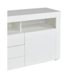 Une allure futuristeDe forme rectangulaire, ce meuble TV blanc se pare d’une finition laquĂ©e. Avec sa lumière LED bleue, ce meuble TV design apporte une touche contemporaine bienvenue au salon. Pour Ă©quilibrer le style un brin futuriste de ce modèle, on peut opter pour un canapĂ© en tissu.Des instructions fourniesCe meuble TV se monte facilement. Pour cela, vous pouvez suivre les instructions indiquĂ©es dans la notice d’utilisation, fournie lors de l’achat. Avant de choisir ce meuble TV droit, pensez toujours Ă vĂ©rifier que ses dimensions conviennent Ă votre pièce, que ce soit le salon ou la chambre.De nombreux rangementsRobuste, ce meuble TV en panneaux de particules peut accueillir une tĂ©lĂ©vision de 40 kg au maximum. Ce meuble TV L. 120 x H. 74 x P. 44 cm se dote de nombreux rangements. En effet, ce meuble TV avec trois tiroirs comprend aussi deux portes et une niche avec sĂ©parations, pour plusieurs consoles vidĂ©o par exemple.