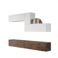 FabriquĂ© entièrement en Italie par des mains artisanales avec des matĂ©riaux de premier choix, ce meuble mural au design moderne et linĂ©aire est parfait pour placer la tĂ©lĂ©vision, ranger des objets du quotidien, afficher des ornements, des livres et meubler le salon avec style et fonctionnalitĂ©. La composition est composĂ©e de plusieurs Ă©lĂ©ments suspendus en bois alliant noyer et frĂŞne blanc, soit 4 unitĂ©s murales horizontales, dont deux avec vasistas et deux portes abattantes, et une unitĂ© murale verticale plus petite. Les deux Ă©lĂ©ments muraux qui servent de base au tĂ©lĂ©viseur sont divisĂ©s Ă l’intĂ©rieur en deux compartiments pratiques, ainsi que les suspendus, qui permettent de ranger soigneusement les objets les plus variĂ©s de la maison, grands ou petits ; la longue Ă©tagère laisse place Ă tout type de dĂ©coration et vous pouvez dĂ©cider de les mettre bien en vue ou de les conserver dans l’unitĂ© murale verticale supplĂ©mentaire avec les accessoires utiles Ă garder Ă portĂ©e de main. Les armoires sont Ă©quipĂ©es d’un mĂ©canisme push-pull, une lĂ©gère pression suffit et les portes des Ă©lĂ©ments hauts s’ouvrent et se ferment facilement au moyen des pistons Ă gaz. Comme toutes les compositions de la ligne Isoka, chaque module peut ĂŞtre positionnĂ© Ă volontĂ© sur le mur et se caractĂ©rise par une profondeur de 40 cm qui offre beaucoup d’espace utile pour accueillir mĂŞme de grands objets, afin de toujours tout garder en ordre.