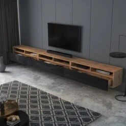 Points forts Selsey Meuble TV – REDNAW – 300 cm – chĂȘne wotan / noir brillant