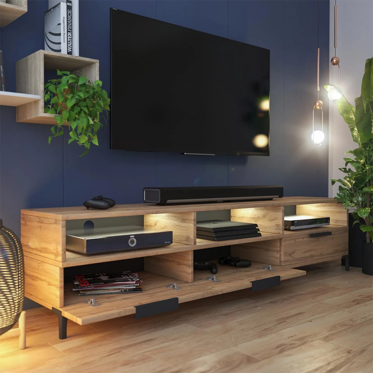Points forts Selsey Meuble tv – RIKKE – 160 cm – chêne wotan – avec LED à piles