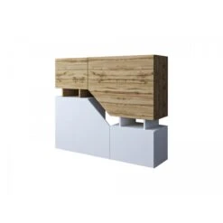 Le buffet Pitt se distingue Ă la fois par son style minimaliste, avec ses quatre armoires sans poignĂ©es, et sa structure gĂ©omĂ©trique très intĂ©ressante et originale, qui, combinĂ©e aux couleurs utilisĂ©es, s’intègre parfaitement dans le caractère des intĂ©rieurs modernes et loft.