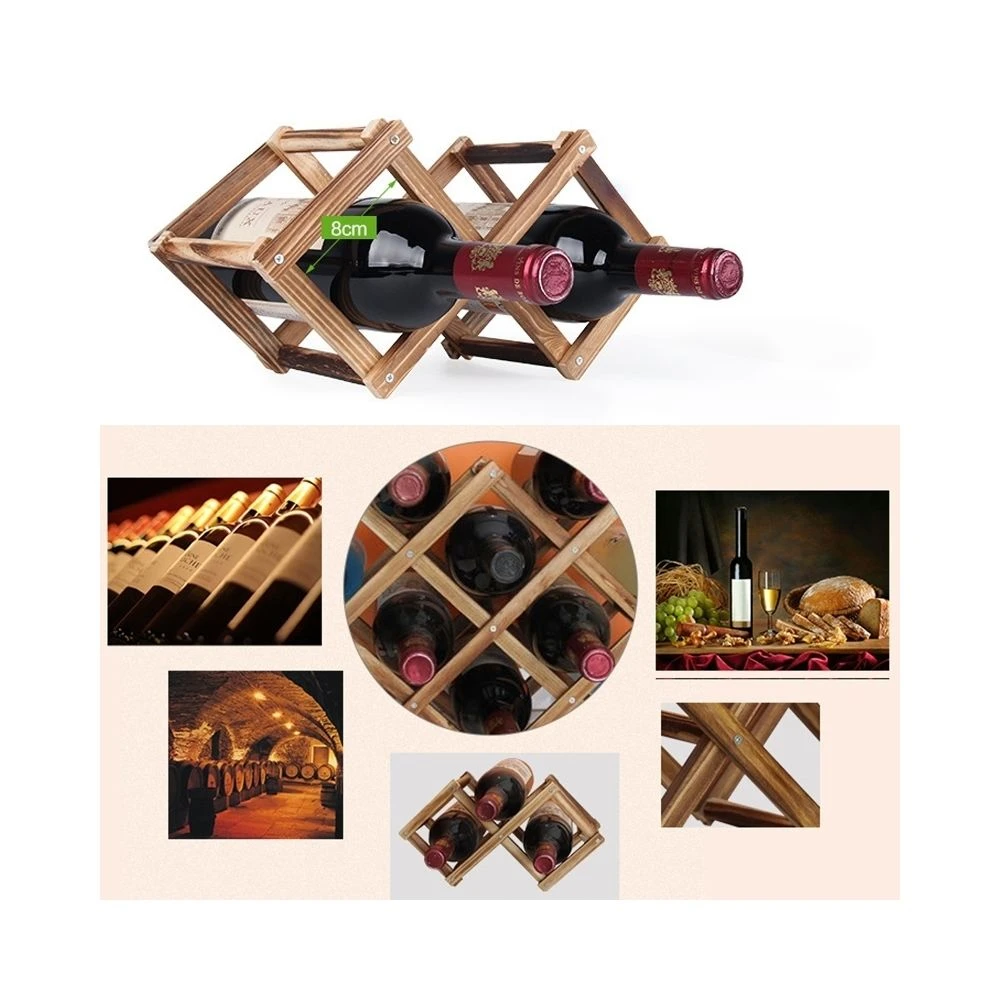 Rangement de Cuisine 10 bouteilles racks support Ă vin pliable porte-vin en bois bar Ă©tagère d’affichage (cuisson au carbone)