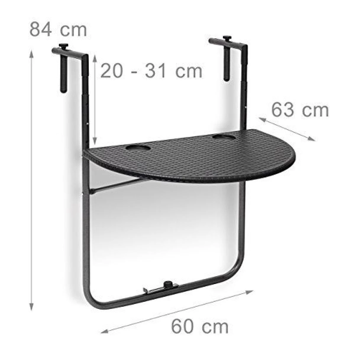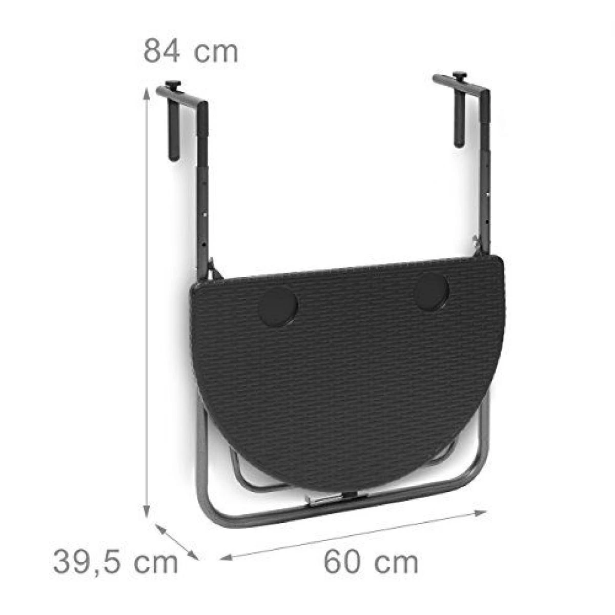 Points forts marque generique Relaxdays Table de balcon pliante appoint table à suspendre balustrade balcon rabattable BASTIAN rotin hauteur réglable HxlxP: 84 x 60 x 63 cm, noir