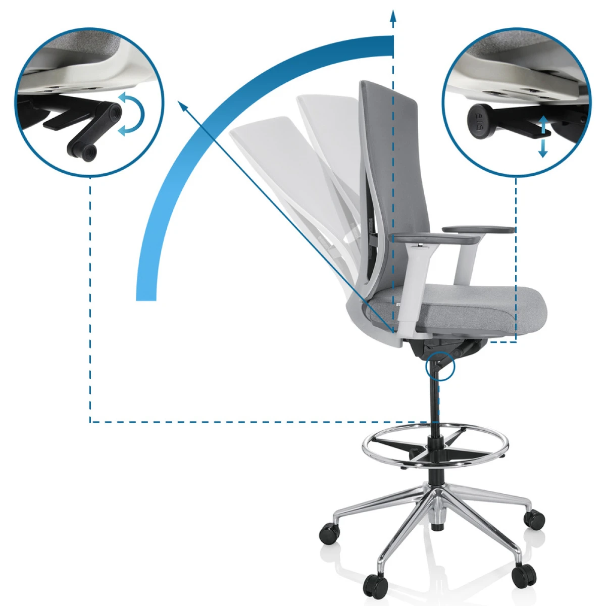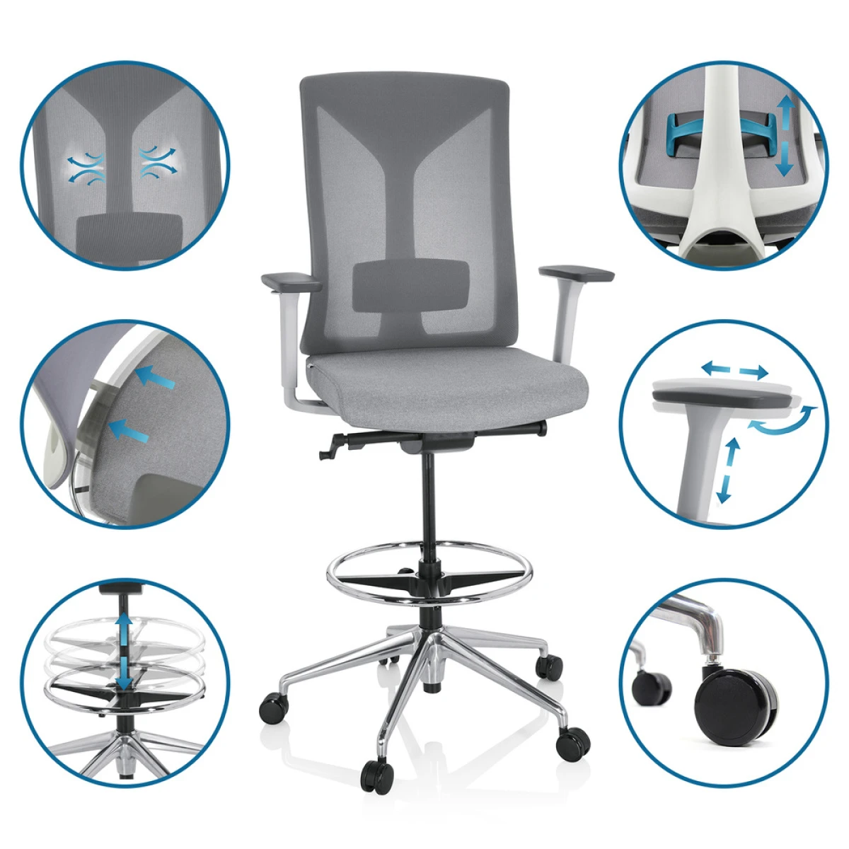Partout oĂą une hauteur d’assise normale ne suffit plus, le HALIFAX WORK vous aide Ă garder vos clients en vue. Que ce soit en production, Ă la rĂ©ception ou dans les comptoirs professionnels, le siège de travail surĂ©levĂ© avec anneau de pied rĂ©glable en hauteur s’adapte Ă tout environnement de travail grâce Ă sa grande flexibilitĂ©. Le dossier ergonomique est recouvert d’un tissu en maille respirante et assure un climat agrĂ©able mĂŞme en cas de position assise prolongĂ©e. La chaise de comptoir est complĂ©tĂ©e par des fonctions ergonomiques polyvalentes telles que le mĂ©canisme synchrone, le soutien lombaire et les accoudoirs 3D, grâce auxquels la chaise peut ĂŞtre adaptĂ©e Ă l’utilisateur et Ă ses tâches de travail en un rien de temps. Procurez-vous le HALIFAX WORK et profitez de la flexibilitĂ© et du confort sur votre lieu de travail.