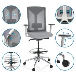 Points forts Hjh Office Siège technique / Tabouret technique HALIFAX WORK Tissu / Tissu maille gris hjh OFFICE