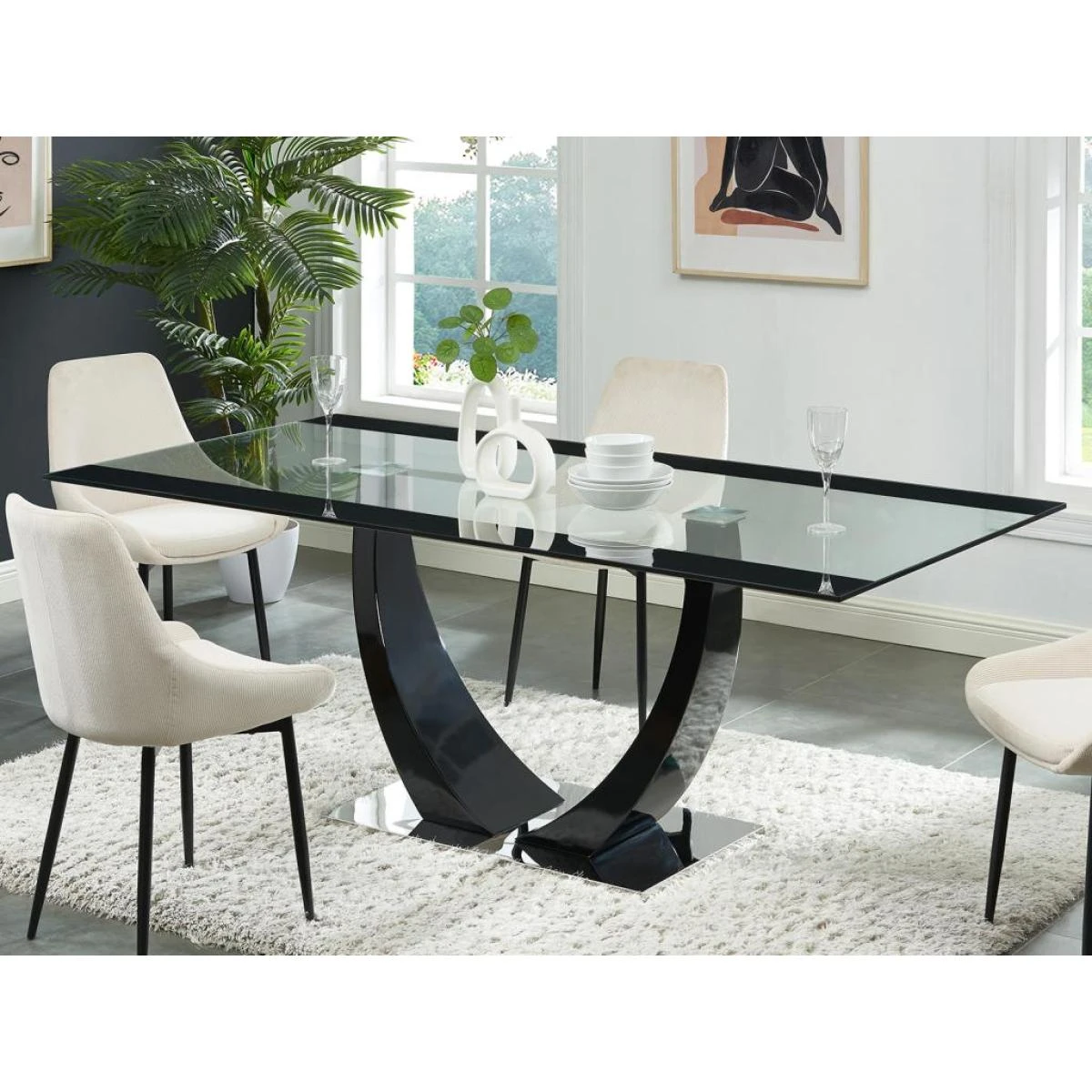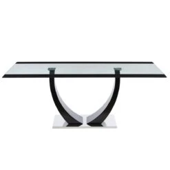 Points forts Vente-Unique Table à manger 8 couverts en MDF, verre trempé et acier inoxydable – Noir – MEZZO II