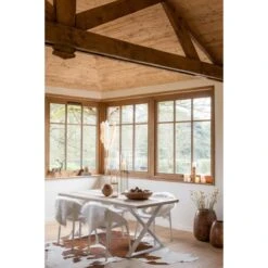 Elle est idéale pour être installée dans une salle à manger, s’intégrant parfaitement dans un intérieur de style industriel. Elle se distingue par ses lignes épurées et ses motifs chevrons.