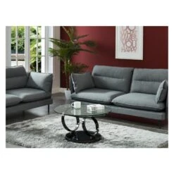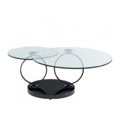 Points forts marque generique Table basse avec plateaux pivotants JOLINE – Verre trempĂ© transparent et pied chromĂ© noir