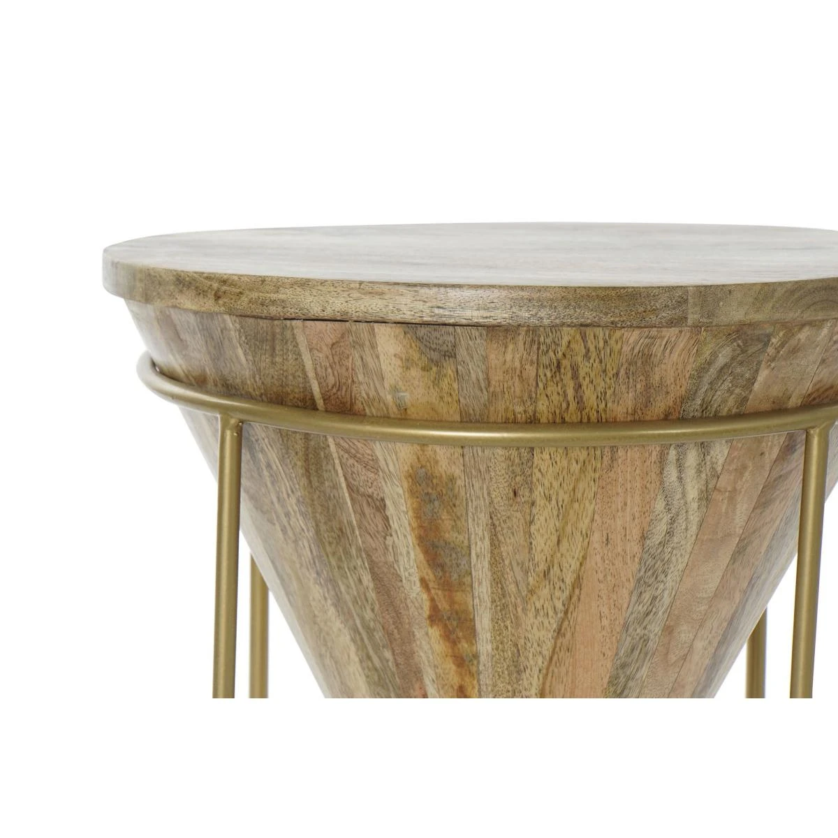 Table d’appoint en bois de manguier naturel et métal doré.