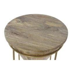 Points forts Pegane Table d’appoint en bois de manguier et métal coloris naturel doré – diamètre 41 x hauteur 45 cm