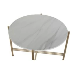 Points forts Pegane Table d’appoint en marbre et métal coloris blanc doré – diamètre 65 x hauteur 45 cm