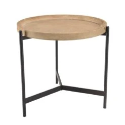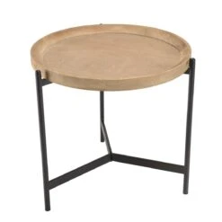 Points forts MACABANE Table d’appoint ronde 55×55 plateau naturel pieds métal noir VICTOIRE