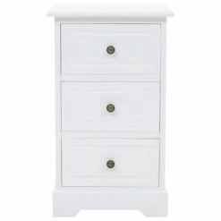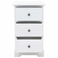 Cette table de chevet sera un supplĂ©ment parfait Ă la dĂ©coration de votre chambre Ă coucher grâce Ă son design chic et Ă sa finition blanche Ă©purĂ©e. Elle peut Ă©galement ĂŞtre utilisĂ©e comme armoire latĂ©rale. La table de nuit est en MDF et dĂ©corĂ©e de poignĂ©es mĂ©talliques sur les tiroirs. Conçue avec 3 tiroirs, elle offre un grand espace de rangement pour garder les petits objets bien rangĂ©s et Ă portĂ©e de main. Vous pouvez Ă©galement placer votre rĂ©veil, un verre d’eau rafraĂ®chissant ou des objets dĂ©coratifs comme des cadres photo sur la surface supĂ©rieure du meuble. L’article est dĂ©jĂ assemblĂ© aucun assemblage n’est requis. Couleur : blanc MatĂ©riau : MDF + bois de pin + mĂ©tal Dimensions totales : 35 x 32 x 59 cm (L x l x H) Dimensions du tiroir : 27,5 x 30 x 14 cm (I x P x H) Avec 3 tiroirs Aucun assemblage requis AVERTISSEMENT : afin d’Ă©viter tout basculement, ce produit doit ĂŞtre utilisĂ© avec le dispositif de fixation murale fourni.