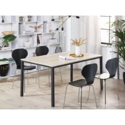Points forts Beliani Table de salle Ă manger effet bois clair / noir 150 x 90 cm HOCKLEY