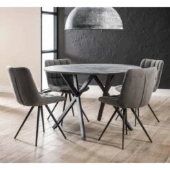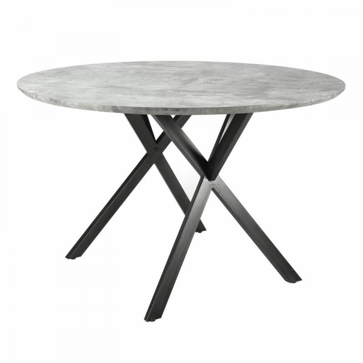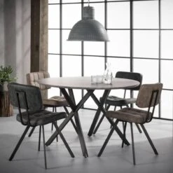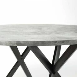 Points forts L’HĂ©ritier Du Temps Table Ronde Hinsk Table de Repas Design Indus en Acier Noir et Bois avec Finition BĂ©ton 76x120x120cm