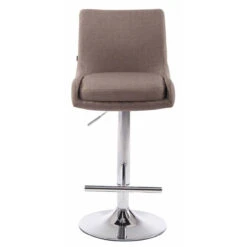 Points forts Decoshop26 Tabouret de bar avec repose-pied design moderne en tissu taupe pieds en métal aspect chromé TDB10454