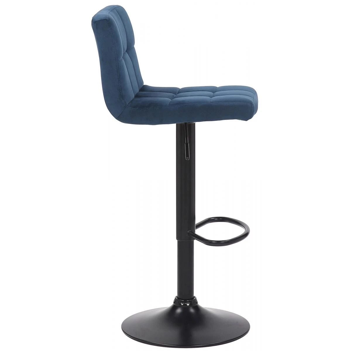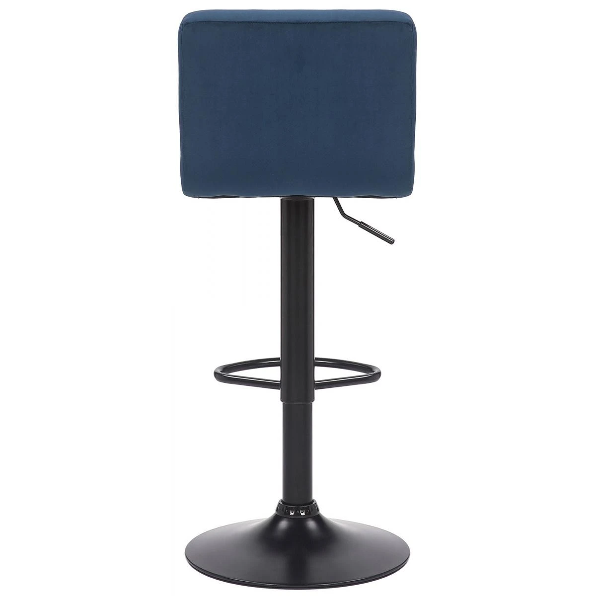 Points forts Decoshop26 Tabouret de bar en velours bleu avec pieds en métal noir assise rembourée repose-pieds pivotant TDB10175