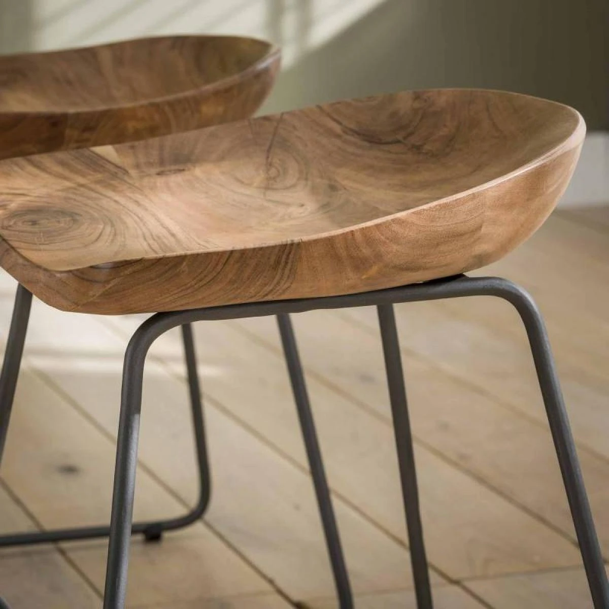 Points forts L’Héritier Du Temps Tabouret de Table Hinsk Assise Siège Chaise Design en Métal Noir et Bois Naturel 41x41x52cm