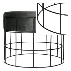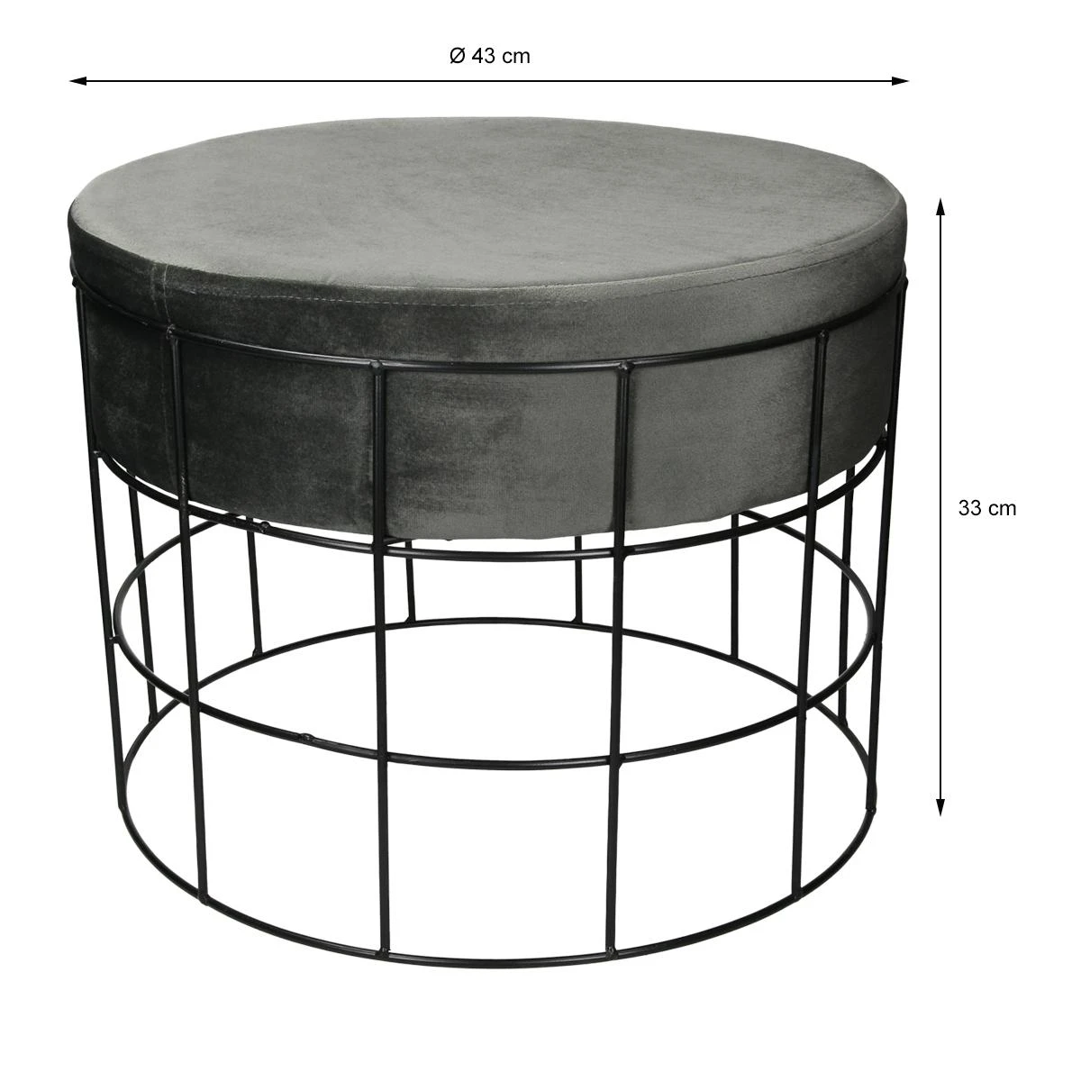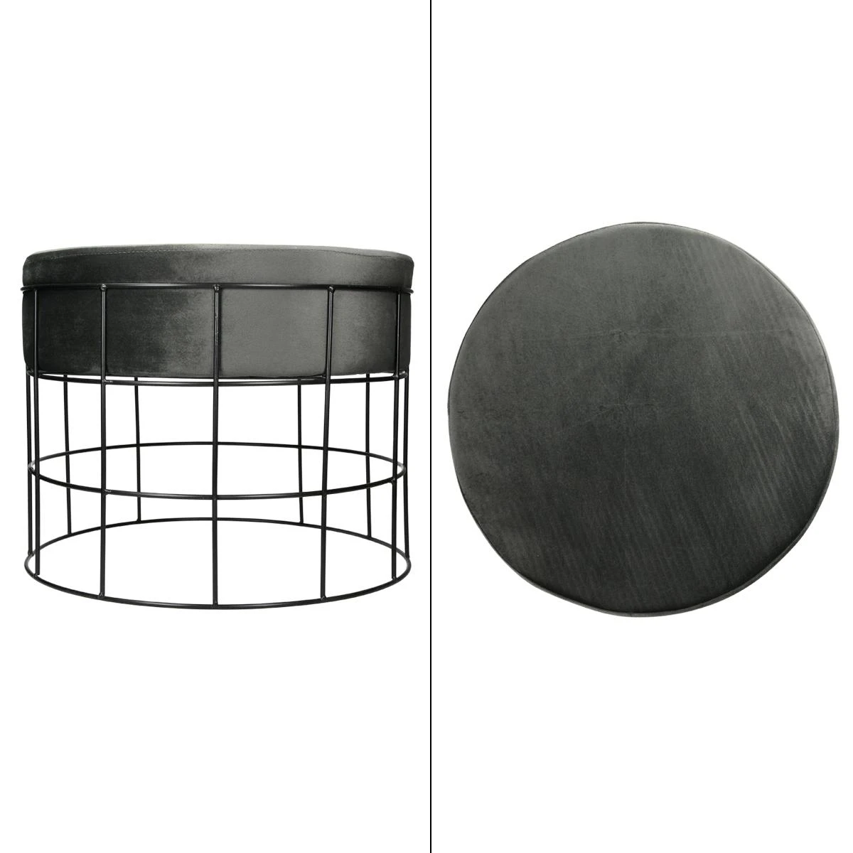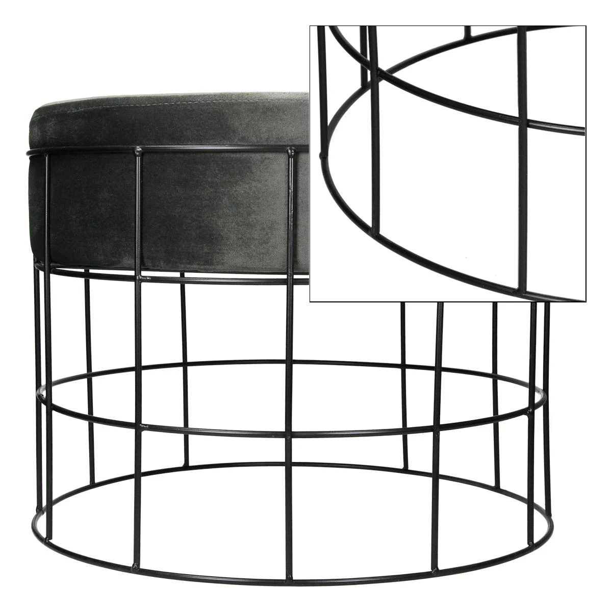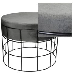 Points forts Ecd Germany Tabouret pouf ottomane repose-pieds rond en velour gris foncé et métal siège