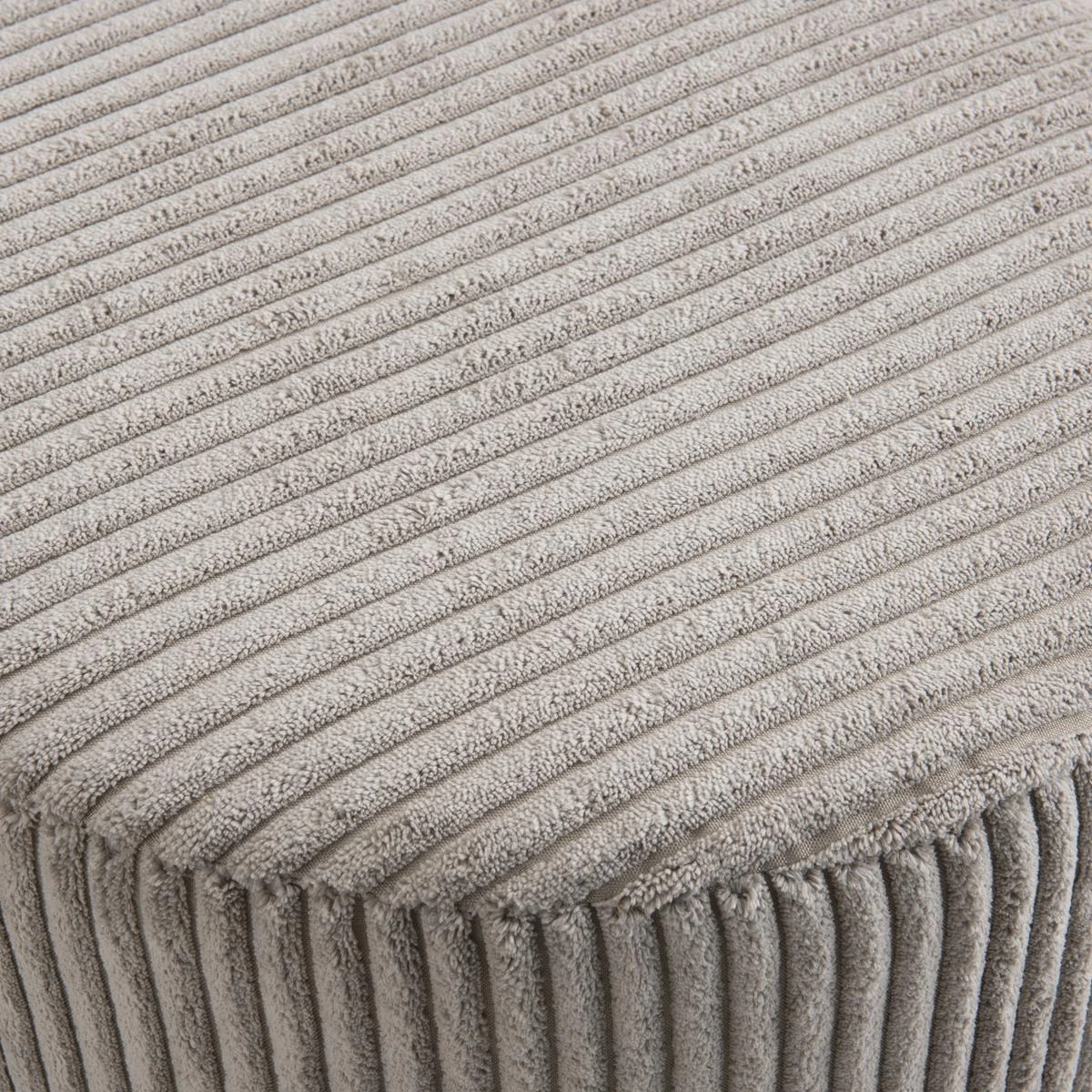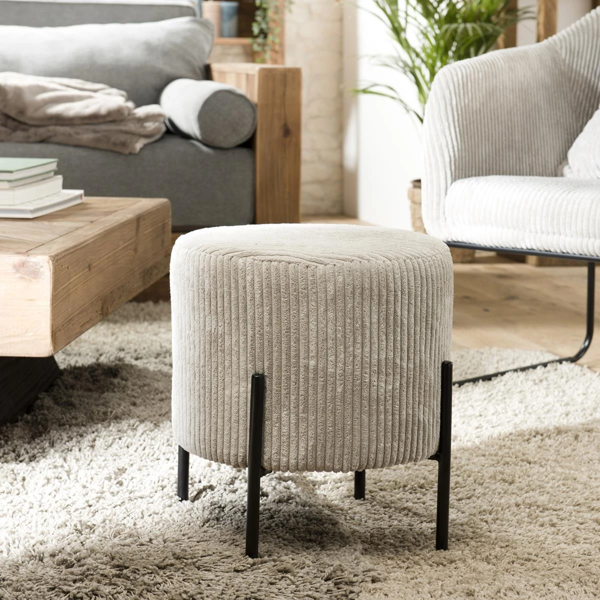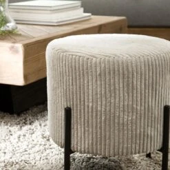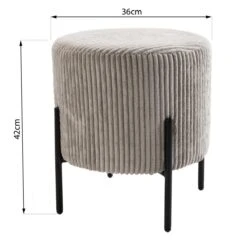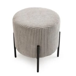 Points forts MACABANE Tabouret Rond ALBANE Velours Cotelé Gris Perle Pieds Métal