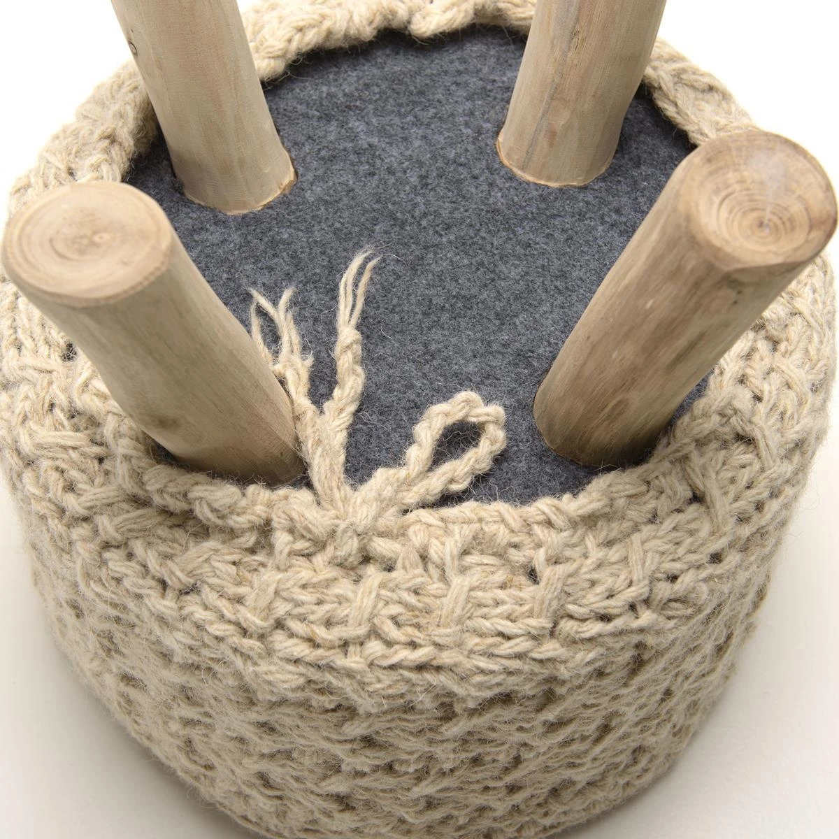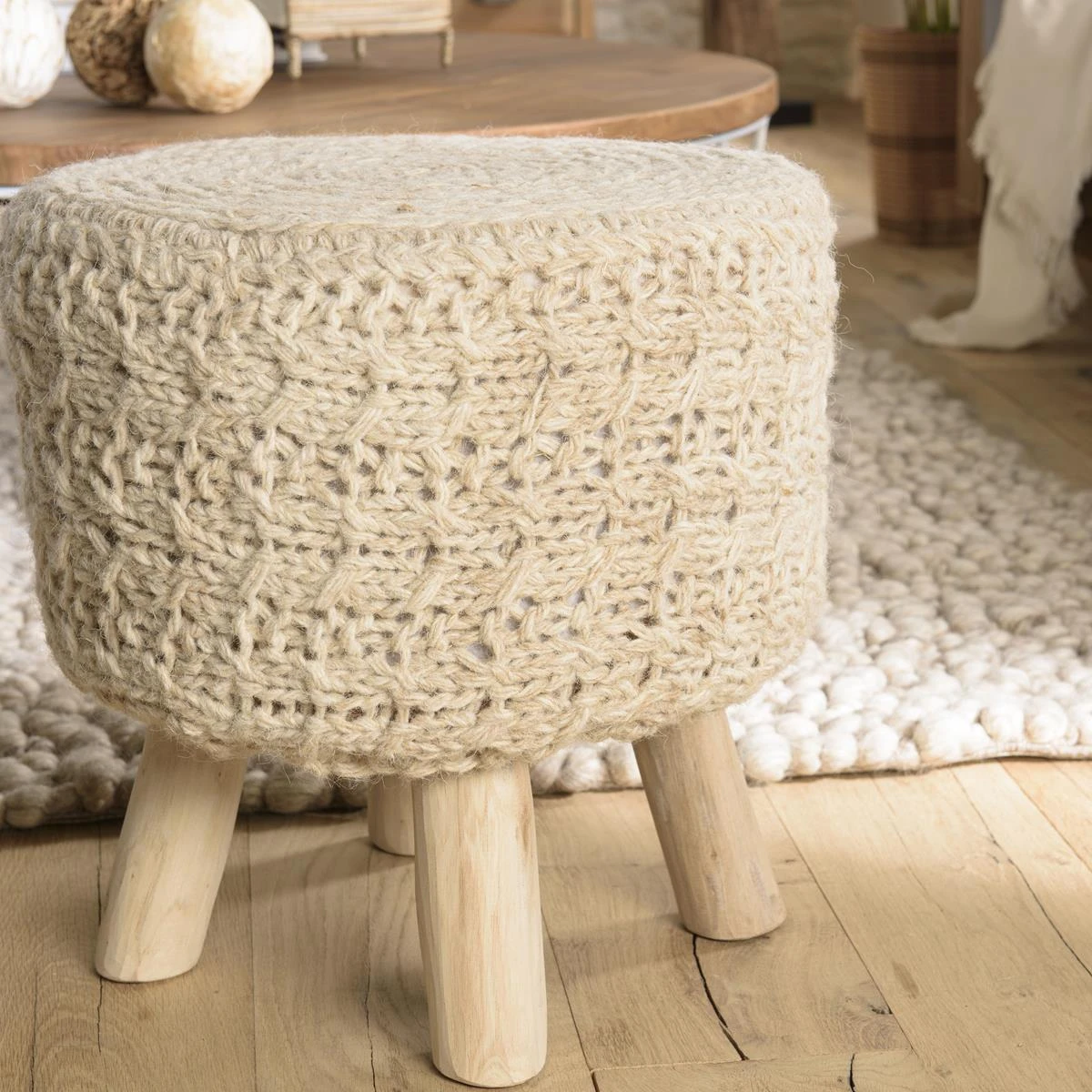 Points forts MACABANE Tabouret Rond CHARLES Bois Et Laine Ivoire