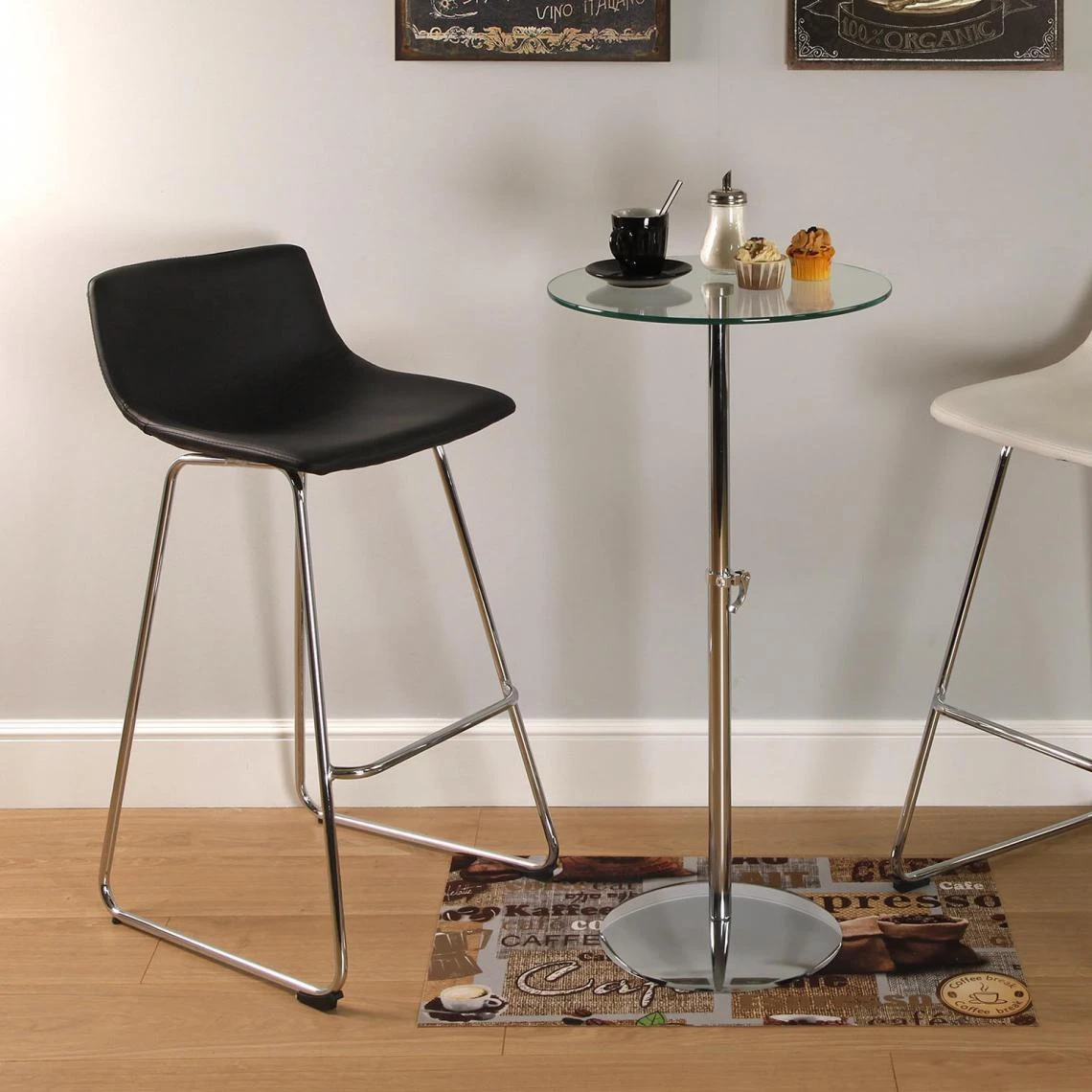 Adoptez ce Tabouret Simili et MĂ©tal EREL Noir au design moderne. Il arbore une assise et un dossier en Simili noir ainsi qu’un piĂ©tement en mĂ©tal en forme de trapèze avec antidĂ©rapants.