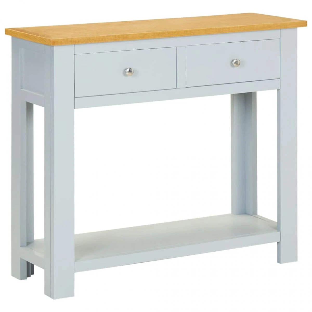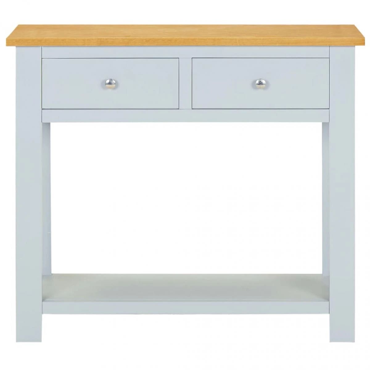 Notre table console en bois, avec son style rustique, convient Ă nâimporte quelle piĂšce de votre maison. Cette table a Ă©tĂ© spĂ©cialement conçue Ă partir de chĂȘne massif durable et de bois d’acacia. Les bords propres et les boutons mĂ©talliques polis ajoutent Ă son style champĂȘtre moderne. Le dessus rectangulaire est idĂ©al pour placer un tĂ©lĂ©phone ou afficher des objets dĂ©coratifs tels que des cadres photo ou des plantes en pot. Deux tiroirs vous offrent un espace suffisant pour stocker vos bibelots, cosmĂ©tiques et autres petits objets essentiels. LâĂ©tagĂšre en dessous peut fournir un espace de rangement supplĂ©mentaire. GrĂące Ă sa conception compacte, notre table console nĂ©cessite trĂšs peu dâespace et peut Ă©galement ĂȘtre placĂ©e dans des piĂšces plus petites.