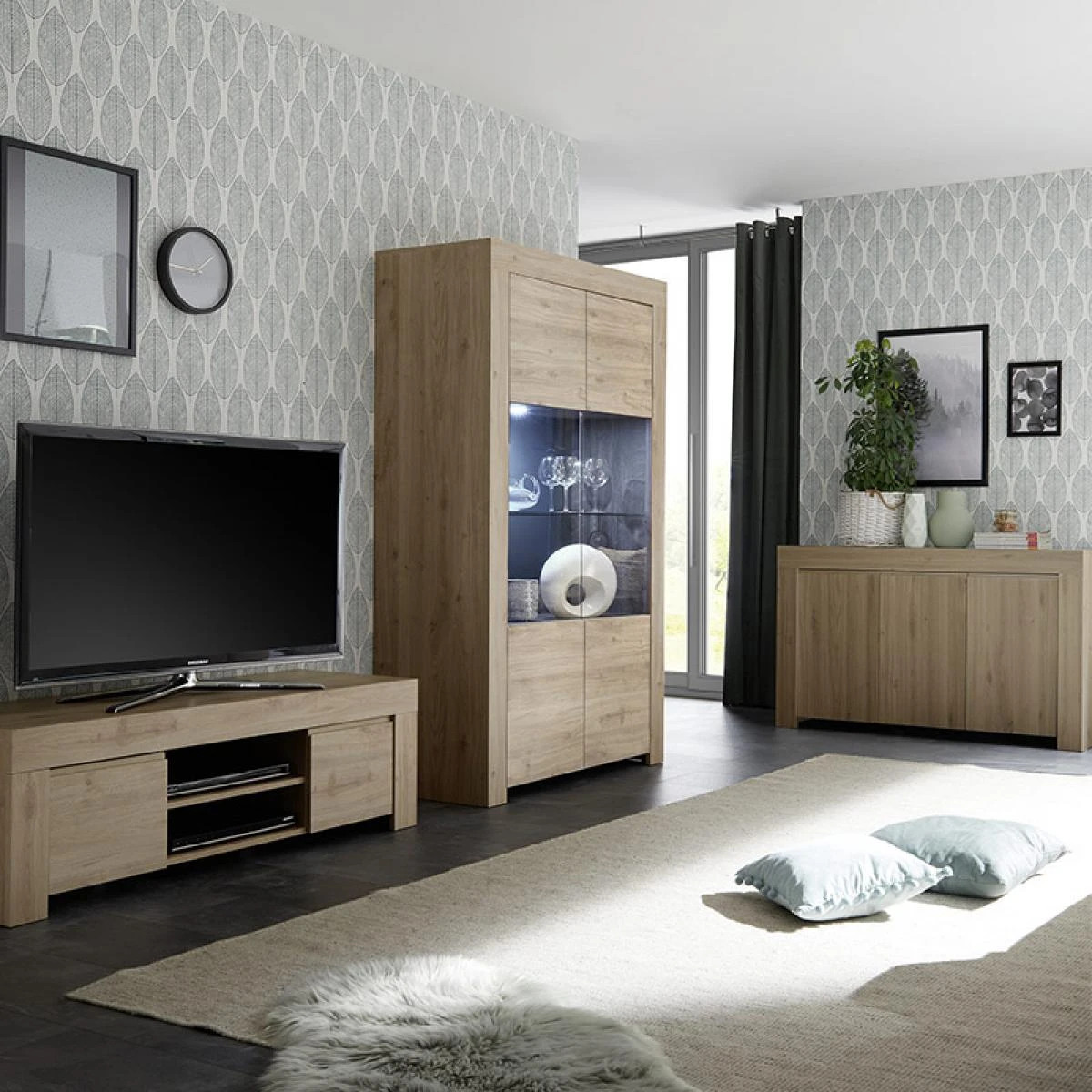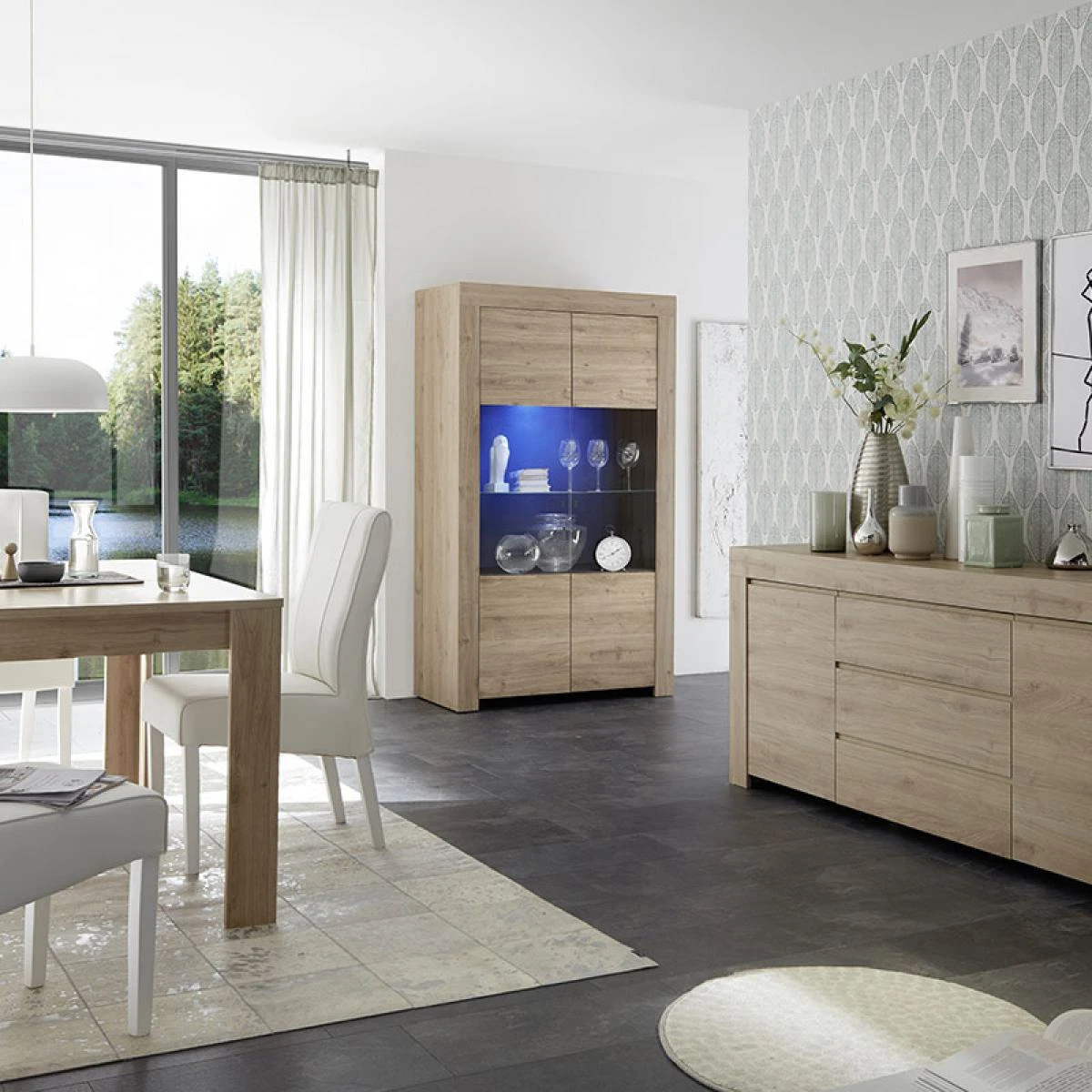 Points forts Nouvomeuble Vitrine Vaisselier contemporain 110 cm chêne clair ALANO sans éclairage